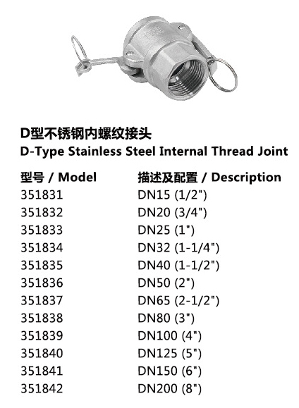 • D型不锈钢内螺纹接头